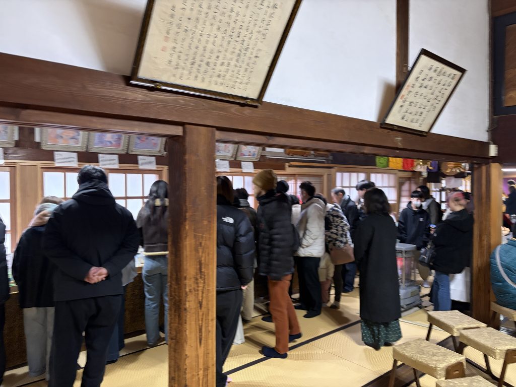 Home › 寺からの案内 › 大祭後の祈祷日 2026-01-03 大祭後の祈祷日 昨日2日は,曇りぎみで少し寒い感じでしたが,多くの方々にご参拝いただきました.例年ですと2日は,参拝者が少なめではあるのですが,今年は昼時を中心ににぎわっておりました.本日3日も良いお天気ですので,皆様お出かけください.明日までの御祈祷時間は,9時~17時です. 4日の大祭以降の御祈祷日は, 1月10日(土)~12日(祝)の10時~15時 (30分毎) となっております.大祭にお越しいただけなかった方は,三連休にご参拝ください.よろしくお願いいたします. 下の写真は,昨日2日の様子です. 関連記事 紅葉がはじまりました 厄よけ大祭祈祷時間 春の便りと涅槃図 令和7年秋葉三尺坊大祭 令和8年桐生厄よけ薬師大祭祈祷札WEB申込受付開始 道元禅師の和歌碑