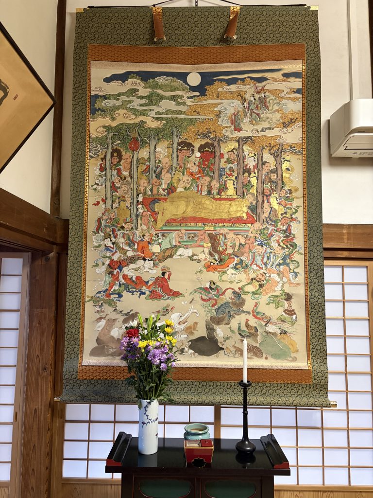 Home › 寺からの案内 › 涅槃へ向けて 2026-02-01 涅槃へ向けて 本日から,2月です.早いもので新年も1ヶ月があっという間に過ぎてしまいました.厄よけ大祭から始まり,年始関連の行事が終わり,まもなく立春を迎えます.今年の御札等は,なるべく立春までにお受けいただけますようお願い致します. さて,2月は,仏教において大切な日がございます.2月15日です.お釈迦様が入滅された日です.この命日には,お寺では,涅槃会等行事を行いますが,お釈迦様が亡くなった時の様子を表した涅槃図という絵を本堂に掛け,お経をお唱えいたします.本日より,本堂に涅槃図を掛けております.どうぞ,お参りください. 関連記事 令和8年桐生厄よけ薬師大祭祈祷札WEB申込受付開始 2月15日は涅槃会 水子地蔵尊の立て看板 本堂正面改修工事中 赤十字より感謝状 明日から3日間祈祷(10~12日)