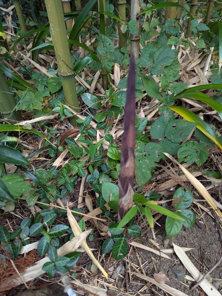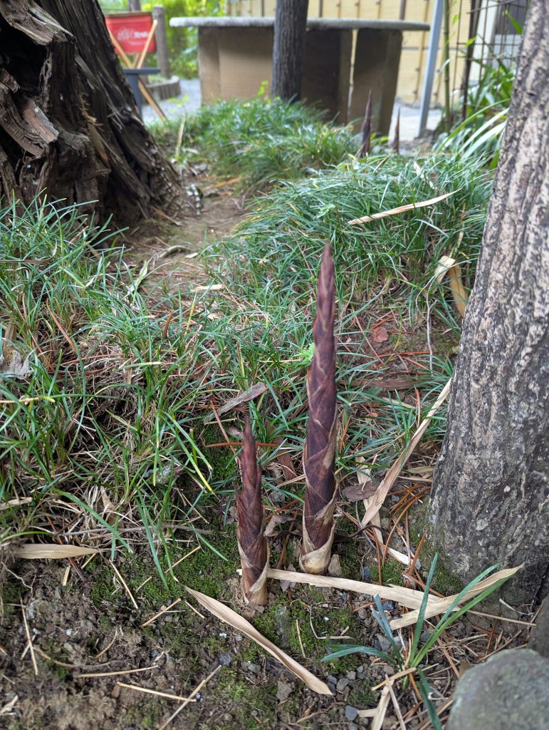 Home › 境内の季節散歩 › 秋の風物詩:四方竹のたけのこ 2025-10-23 秋の風物詩:四方竹のたけのこ 秋になりますと泉龍院では,四方竹の「たけのこ」シーズンとなります.通常,たけのこというと春に出てくるものだと思いますが,四方竹は,秋なんです.毎年,焦げ茶色のたけのこが10月ぐらいにニョキニョキとはえてきます.四国,高知に四方竹は多く群生しているようでして,たけのこを食べる習慣があるようです.あく抜きをするとシャキシャキして美味しく食べられるようです. 関連記事 春の花々咲く 本堂西側の庭園完成 桜,さくら,サクラ,満開です 梅雨明けの境内 つつじ開花 ハイキング日和 本日で彼岸も終わり