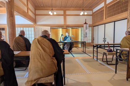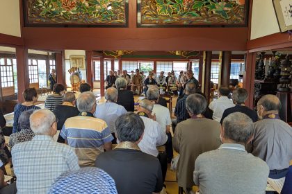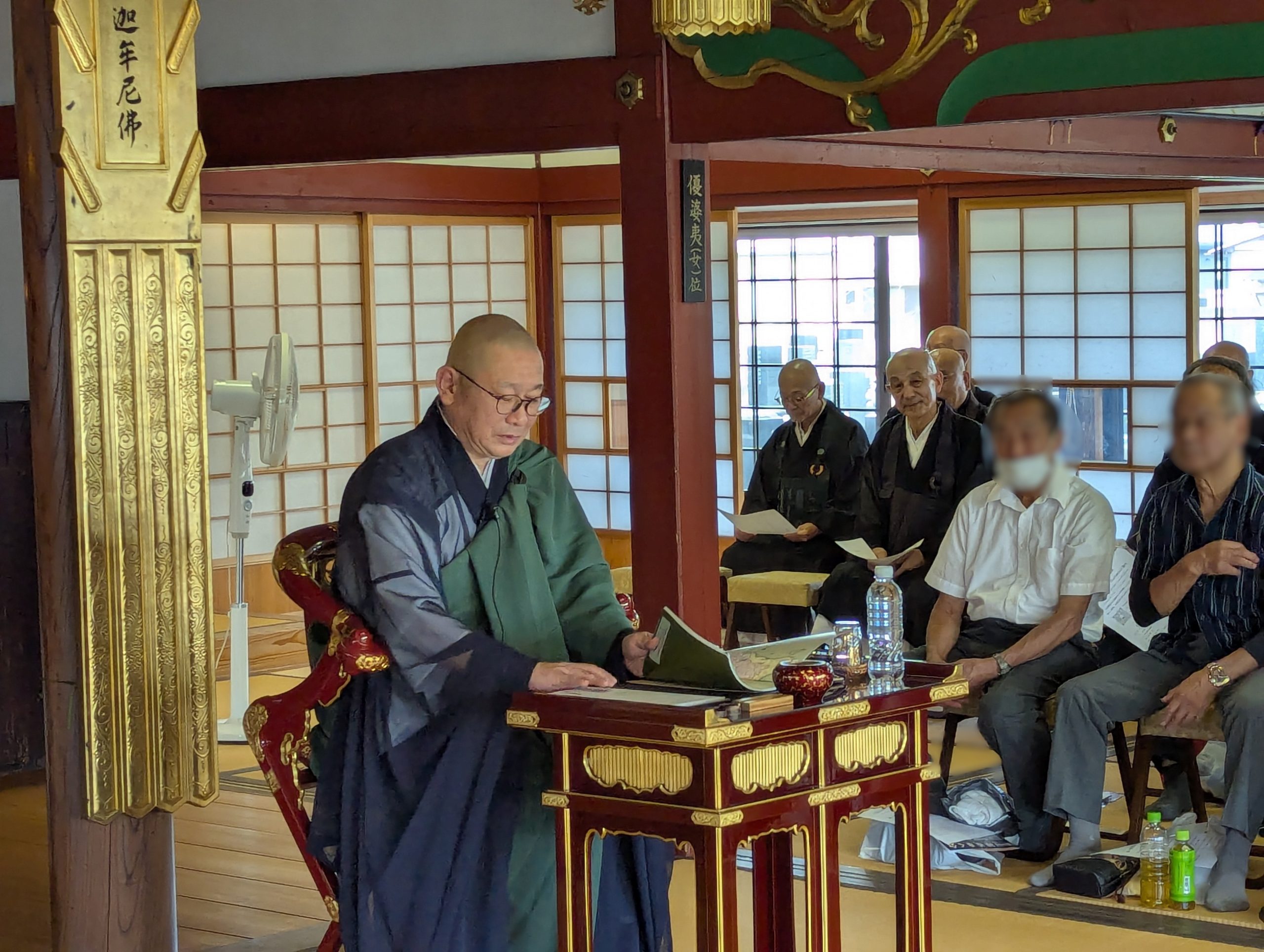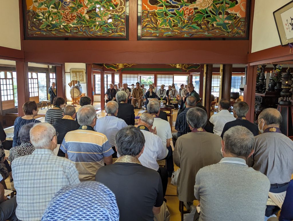 Home › 新着 行事報告 › R7特派布教会 2025-10-01 R7特派布教会 去る9月29日(月)に境野町祥雲寺様にて特派布教師(北海道正覚院住職松村直俊老師)による特派布教会が開催されました.お天気に恵まれ少し汗ばむ陽気ではございましたが,良い環境にて布教師様の心のこもった法話を聞くことができました.布教師様はとても明るい感じで檀信徒の皆様へお話され,分かりやすい言葉で,ご自分とお檀家様との関係を通した体験による内容から,縁起を説明され,互いに助け合いながら生きていくことの大切さを説かれ,管長猊下の告諭をわかりやすくお話されました. 関連記事 R7群馬県祖門会主催眼蔵会 当山十八世住職晋山結制法要円成いたしました 令和6年涅槃会 大般若経典天日干し R7菱公民館生涯学習坐禅会 本日は両祖様の命日 R7群馬県祖門会主催眼蔵会